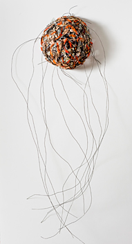 oil enamel on silk with steel wire, 7" x 7" x 7"