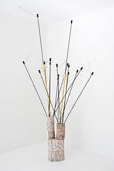 Lastly, quite a few of the works in this show incorporate discarded "refuse" from our consumer culture...most notably automobile tires. Even though my home is solar powered, my car is small, gets good gas mileage and has low emissions, and my carbon footprint is relatively small, I know I have stressed my environment. I have actually pulled some of the tires for this show out from under piles of dirt to clear the site and to reclaim them in the name of art. It is a tiny, and some might argue ridiculous action, but I humbly submit for your viewing a monument both to our wastefulness and to our ability to be resourceful in the name of art and nature.