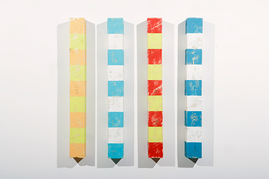 Banded Posts (set of 4), 2012, acrylic on wood, 36" x 4" x 4"