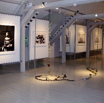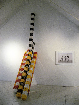 Banded Artifacts is an installation of works of contemporary art that explores the line between the sacred and the profane, between art and the functional, between ancient and contemporary, and where we are, where we came from and where we are headed. Paul Oberst has been on a lifelong quest of manifesting in architectural, performance, art and utilitarian expressions, the mythic and sublime wonders and mysteries that baffle and inspire us all. His "temple" is a simple architectural passage for the human spirit and imagination, a portal for possibilities. He does not however describe those possibilities. He provides a platform, a locus for the viewers' own visions to initiate. Likewise, the ceremonial objects, which he visualizes as being temporarily removed from within the sealed temple enclosure, are exhibited so that the viewers might imagine for themselves the transformational function of each work. Oberst's sense is that we each have an understanding of the mystical nature of life, and it is in opening ourselves to universal myths and mysterious possibilities that we access this knowledge.
