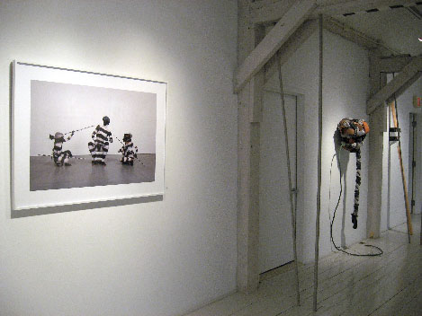 Banded Men is an ongoing collaboration between Oberst and photographer Patrick McNamara. Each decade in the life of the banded male trickster is represented in these solo and group photographs of contemporary males. Inspired by tricksters the world over, but most especially the clown kachinas of the Southwest Pueblo people, these ceremonial guides inspire through confrontation, candor, and mischievous antics. One senses that we have stumbled upon a ritual that we are not intended to witness. The viewer is at first a voyeur, but soon moves through that veil into the realm of transformation. What transpires within the photograph is again left to the viewers to construct of their own volition. The artists, tricksters themselves, know each of us has our own innate way of making that journey.